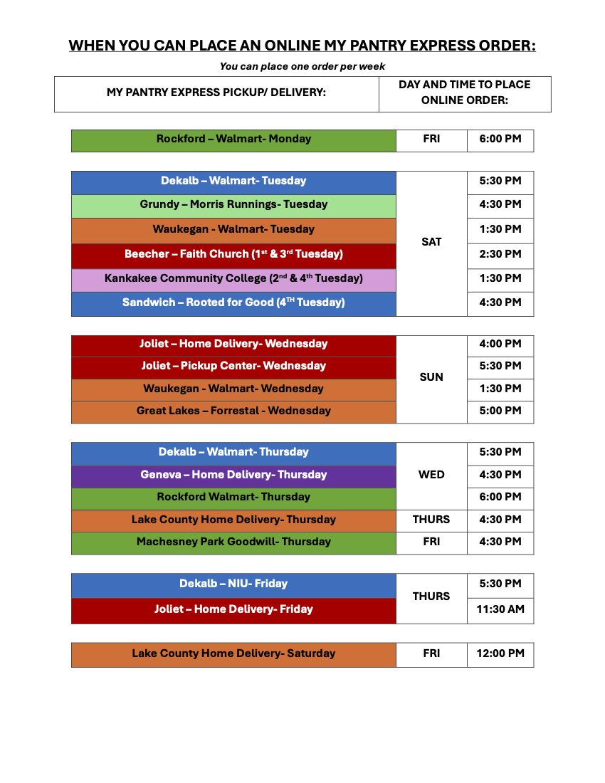 *There will be no distributions at Kankakee Community College and Sandwich – Rooted for Good on Tuesday, Dec. 23rd.